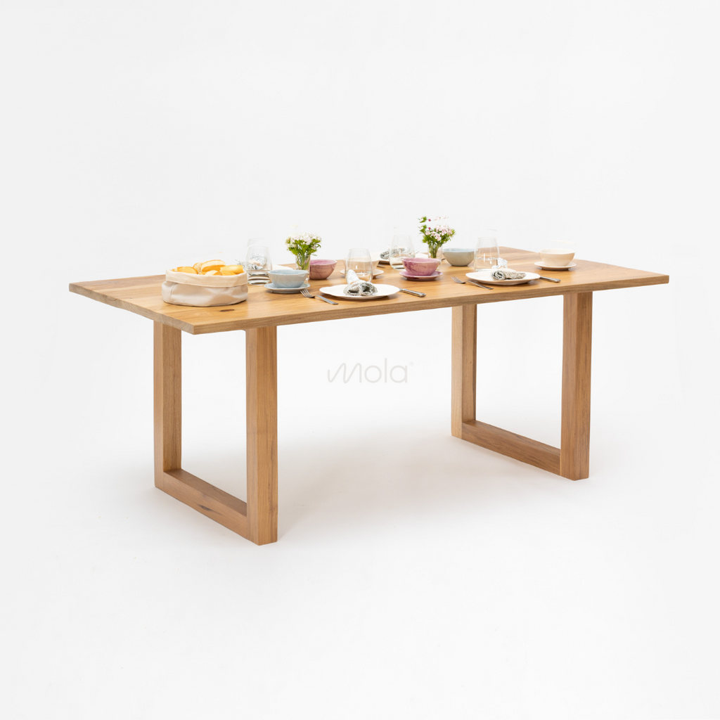Mesa de comedor super cálida realizada íntegramente en madera maciza de petiribí. Calidez y diseño para vestir el comedor de tu casa.
