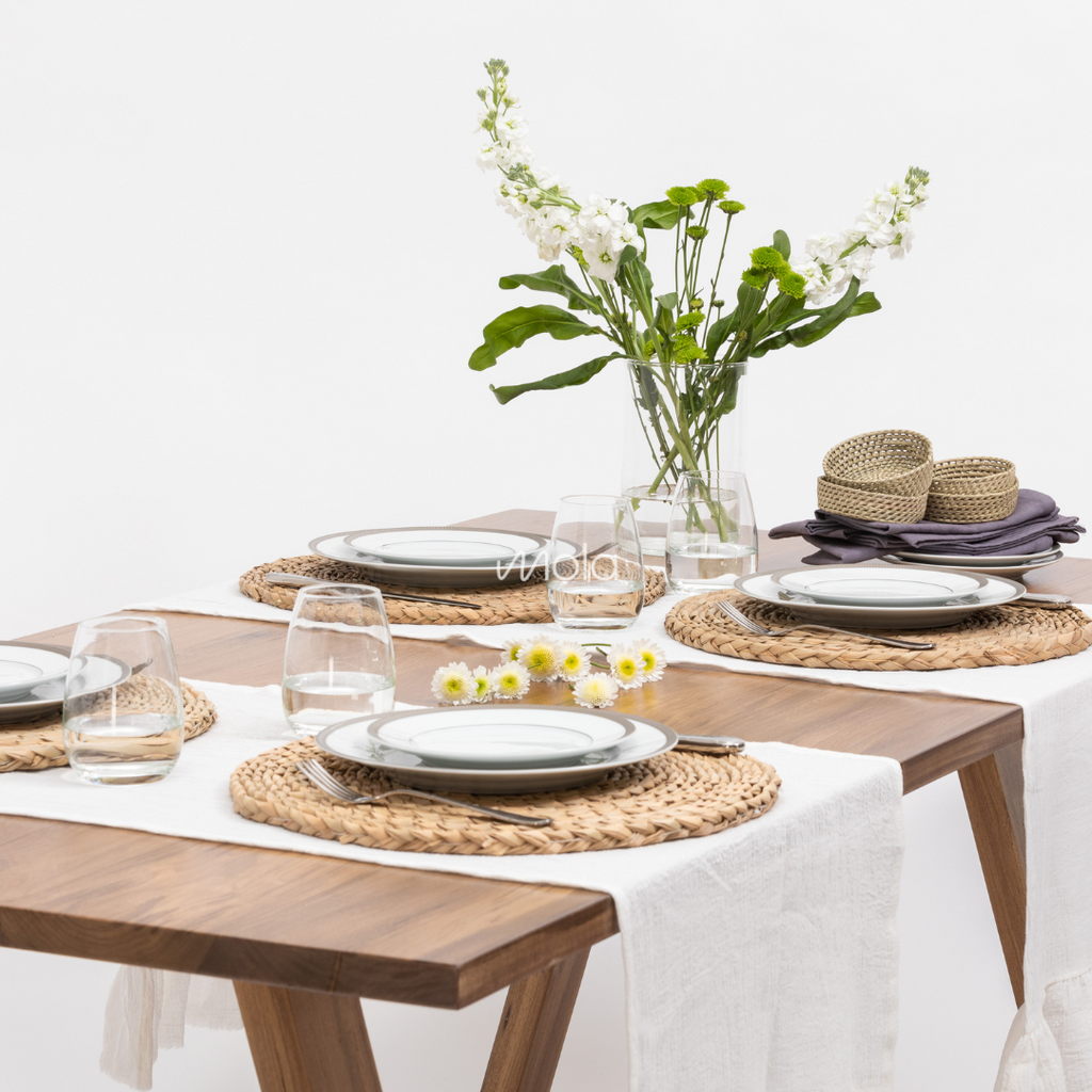 En caso la mesa vaya a utilizarse en una galería, por favor aclararlo en las notas adicionales, ya que por tratarse de madera maciza las tablas de la tapa de la mesa deberán estar separadas unos milímetros.