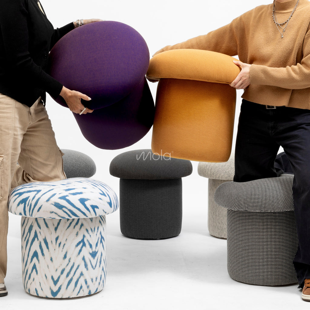 MUSHROOM tapizado en algodón con poliéster, color gris oscuro. También disponible en otras opciones de géneros y colores. Te invitamos a nuestro Showroom a elegir la combinación que más te guste.