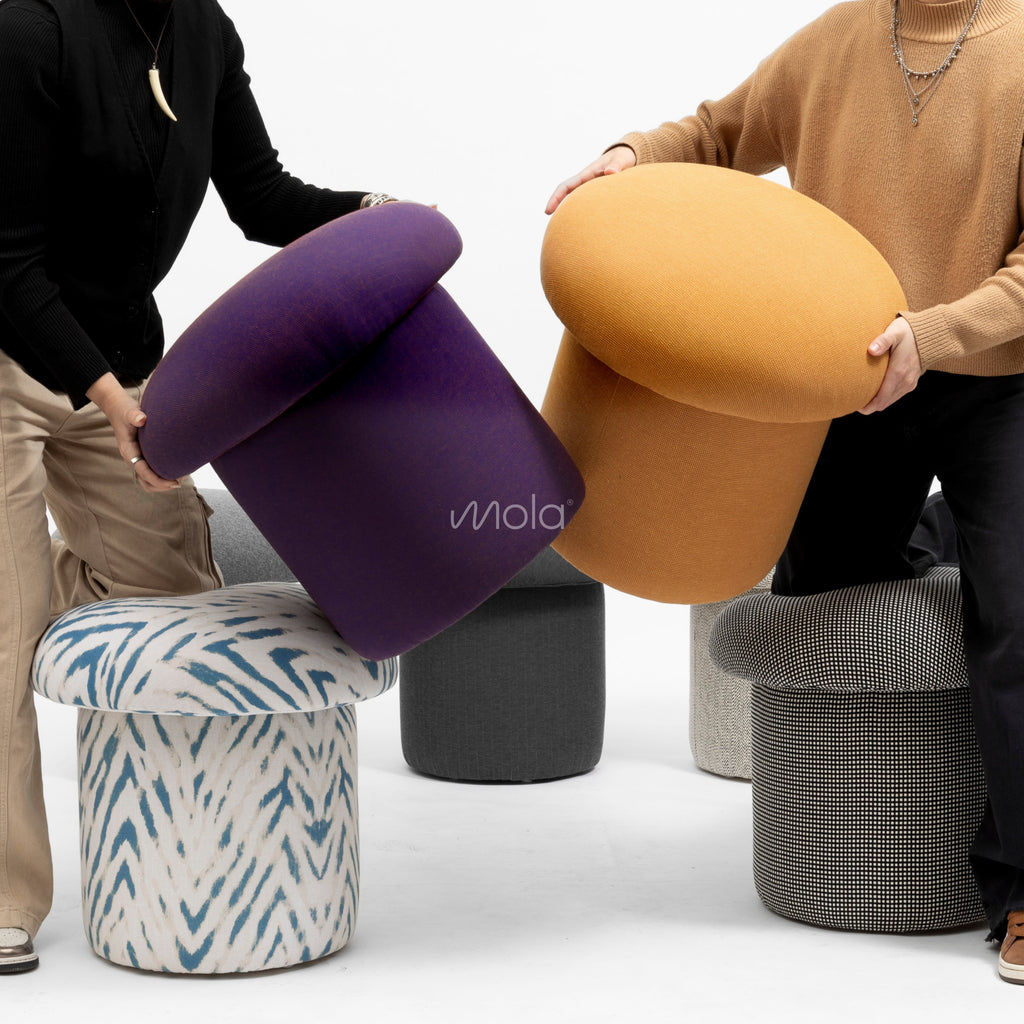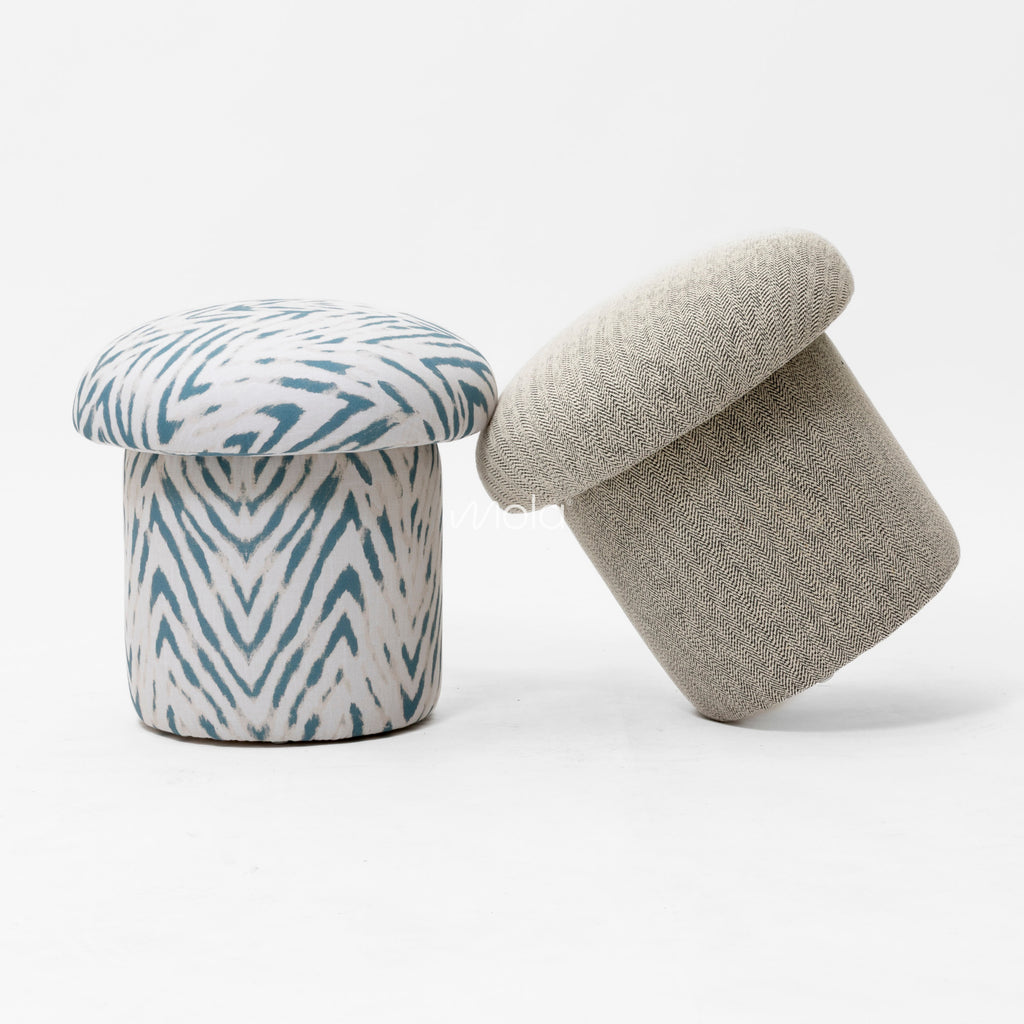 MUSHROOM tapizado en canvas de algodón, color blanco y aqua. También disponible en otras opciones de géneros y colores. Te invitamos a nuestro Showroom a elegir la combinación que más te guste.