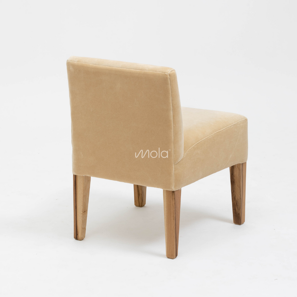 Silloncito muy cómodo para living tapizado en terciopelo (como en la foto) o lino con patas en madera petiribí. ¡Divino!